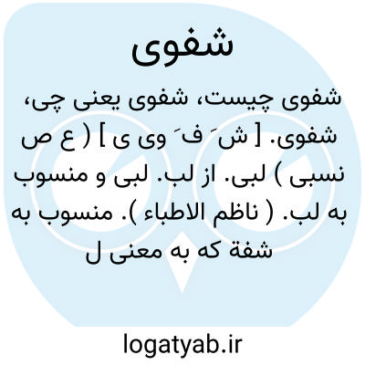 شفوی. [ ش َ ف َ وی ی ] ( ع ص نسبی ) لبی. از لب. لبی و منسوب به لب. ( ناظم الاطباء ). منسوب به شفة که به معنی لب است، چون شفت در اصل شفة بوده، ها را در حالت نسبت به واو بدل کرده شفوی گویند چنانکه منسوب به شهر غزنه را غزنوی گویند، و در صراح و منتخب نوشته که شفوی درست نباشد چنانکه مشهور شده و صحیح شفهی است و حروف شفهی «با و فا و میم » است. ( از غیاث ) ( آنندراج ).
