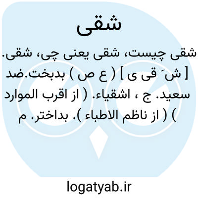 شقی. [ ش ِ ] ( ص نسبی ) منسوب است به شق که دیهی است در دوفرسخی مرو. ( از انساب سمعانی ). || منسوب است به مردی شق نام. ( از لباب الانساب ).