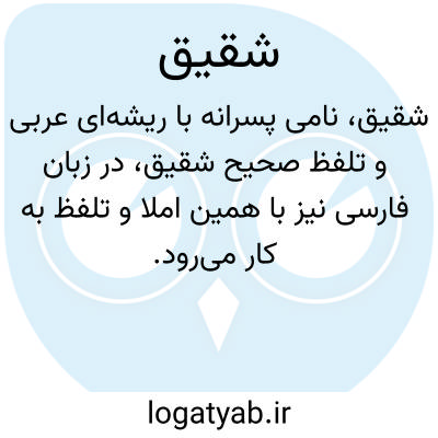 شقیق، نامی پسرانه با ریشهای عربی و تلفظ صحیح شَقِیق، در زبان فارسی نیز با همین املا و تلفظ به کار میرود. این نام در متون تاریخی و مذهبی، یادآور شخصیتهای برجستهای است که در صدر اسلام میزیستهاند. یکی از مشهورترین افراد متخلّق به این نام، شقیق بن سلمهی اسدی، معروف به شقیق ثانی است که از یاران و سرداران وفادار حضرت علی (علیهالسلام) به شمار میرود. وی از جمله جنگجویان شجاع و فداکاری بود که در رکاب امام خود، در نبردهای مهم آن دوران حاضر شد و به درجهی رفیع شهادت نائل آمد. این نام، علاوه بر معنای تحتاللفظی خود، حامل بار ارزشی و تاریخی عمیقی در فرهنگ اسلامی ایرانی است و انتخاب آن، احترام به یکی از چهرههای مؤثر در تاریخ صدر اسلام و تجلیل از روحیهی ایثار و جانبازی در راه عقیده را تداعی میکند.