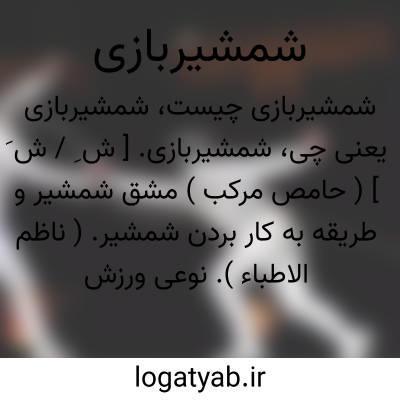 شمشیربازی. [ ش ِ / ش َ ] ( حامص مرکب ) مشق شمشیر و طریقه به کار بردن شمشیر. ( ناظم الاطباء ). نوعی ورزش با شمشیر که دو تن انجام دهند و هر یک با شمشیر به دیگری حمله کند و دیگری باید بکوشد که مورد ضربه حریف قرار نگیرد. ( فرهنگ فارسی معین ). مسایفه. ( یادداشت مؤلف ):
