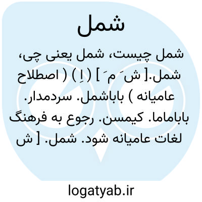 شمل.[ ش َ م َ ] ( اِ ) ( اصطلاح عامیانه ) باباشمل. سردمدار. باباماما. کیمسن. رجوع به فرهنگ لغات عامیانه شود.