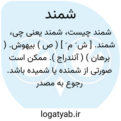 شمند. [ ش َ م َ ] ( ص ) بیهوش. ( برهان ) ( آنندراج ). ممکن است صورتی از شمنده یا شمیده باشد. رجوع به مصدر شمیدن شود. || ( اِ ) بیهوشی. ( برهان ) ( فرهنگ اوبهی ). || بهبود. ( از برهان ) ( آنندراج ). || شمن. این کلمه را به معنی ترسناک و افغان و نوحه کننده نوشته اند وبیت ذیل را از ناصرخسرو شاهد آورده اند: