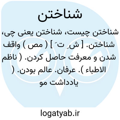 شناختن. [ ش ِ ت َ ] ( مص ) واقف شدن و معرفت حاصل کردن. ( ناظم الاطباء ). عرفان. عالم بودن. ( یادداشت مؤلف ). علم پیدا کردن بر چیزی. آگاهی یافتن. معرفت و علم پیدا کردن:
