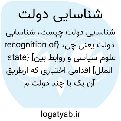 {recognition of state} [علوم سیاسی و روابط بین الملل] اقدامی اختیاری که ازطریق آن یک یا چند دولت موجودیت یک دولت را به عنوان کنشگر در صحنۀ بین المللی می پذیرند متـ. به رسمیت شناختن دولت