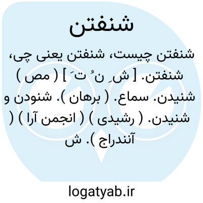 شنفتن. [ ش ِ ن ُ ت َ ] ( مص ) شنیدن. سماع. ( برهان ). شنودن و شنیدن. ( رشیدی ) ( انجمن آرا ) ( آنندراج ). شنیدن. ( جهانگیری ) ( غیاث اللغات ). اصغا کردن. اصاغة. استماع کردن. ( یادداشت مؤلف ). ادراک کردن آواز بتوسط گوش. ( فرهنگ نظام ):