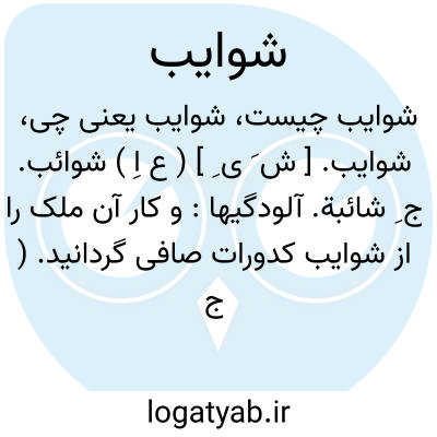 ( اسم ) ۱ - ( اسم ) مونث شایب. ۲ - ( اسم ) عیب وصمت. ۳ - شک گمان جمع: شوایب ( شوائب ).