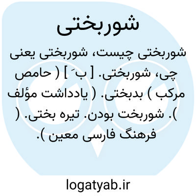 شوربختی. [ ب َ ] ( حامص مرکب ) بدبختی. ( یادداشت مؤلف ). شوربخت بودن. تیره بختی. ( فرهنگ فارسی معین ). نکبت. ادبار. نحس بودن بخت. بدبختی. مقابل پیروزی. مقابل مقبلی: