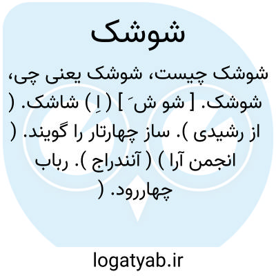 شوشک. [ شو ش َ ] ( اِ ) شاشک. ( از رشیدی ). ساز چهارتار را گویند. ( انجمن آرا ) ( آنندراج ). رباب چهاررود. ( فرهنگ اسدی ). ربابی بود که چهارگه نوازند. ( اوبهی ). طنبور و رباب چهارتار. ( برهان ). تنبوره چارتاره است. ( جهانگیری ):