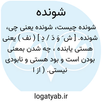شونده. [ ش َ وَ دَ / دِ ] ( نف ) یعنی هستی یابنده، چه شدن بمعنی بودن است و بود هستی و نابودی نیستی. ( از انجمن آرا ذیل شوندان ). هستی یابنده. || انجام گردنده. || رونده. مقابل آینده. ( فرهنگ فارسی معین ).