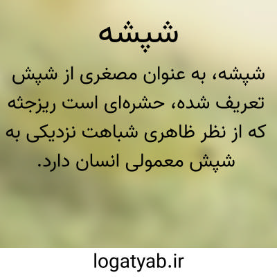( اسم ) ۱ - حشره کوچک و سیاه رنگی است بی بال که دارای قطعات دهانی خرد کننده می باشد و جزو راسته نیم بالان است و بر اثر زندگی انگلی بالها را از دست داده است. این حشره به قسمتهای مختلف نباتات خصوصا دانه غلات حمله میکند و مواد غذایی آنها را از بین می برد شپشه سبوسه. ۲ - حشره کوچکی شبیه به شپش معمولی و ولی قدری از آن کوچکتر و بیشتر به موهای ناحیه زهار و شرمگاه و زیر بغل حمله میکند و پاهایش دارای غلابهای قوی است که به بدن می چسبد و جدا کردنش مشکل است و در موقعی که عده آن در بدن زیاد شود بموهای ابرو و ریش و سینه و سر نیز سرایت می کند شپشه. یا شپشک مرغ. گونه ای شپشک که در زیر پر مرغهای خانگی کبوتر و دیگر پرندگان میزید و به بدن آنها چسبیده از خون آن ها تغذیه می کند. تخمهای این شپشک در انتهای پرهای پرندگان به صورت نواری چسبیده است. شپشک مرغ هیچ وقت بصورت آزاد در مرغداری و لانه پرندگان دیده نمی شود بلکه انتقال آنها از مرغی به مرغ دیگر مستقیم است کنه مرغی.