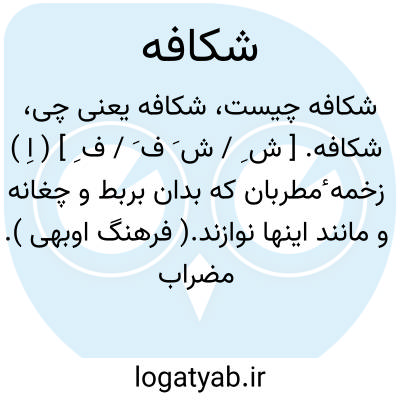 شکافه. [ ش ِ / ش َ ف َ / ف ِ ] ( اِ ) زخمه ٔمطربان که بدان بربط و چغانه و مانند اینها نوازند.( فرهنگ اوبهی ). مضراب و چوبی که بدان ساز نوازند. ( از برهان ) ( از آنندراج ) ( از انجمن آرا ) ( ناظم الاطباء ) ( از فرهنگ جهانگیری ). زخمه خنیاگران. ( فرهنگ اسدی ). زخمه. مضراب. ( یادداشت مؤلف ). شکفه: