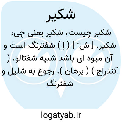 شکیر. [ ش َ ] ( اِ ) شفترنگ است و آن میوه ای باشد شبیه شفتالو. ( آنندراج ) ( برهان ). رجوع به شلیل و شفترنگ شود.
