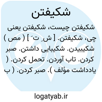 شکیفتن. [ ش ِ ت َ ] ( مص ) شکیبیدن. شکیبایی داشتن. صبر کردن. تاب آوردن. تحمل کردن. ( یادداشت مؤلف ). صبر کردن. ( برهان ) ( آنندراج ) ( غیاث ). آرام گرفتن. ( برهان ):