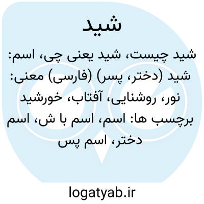 شید. ( اِ ) نور. ( از برهان ). روشنی. ( انجمن آرا ) ( آنندراج ). روشنی. ( غیاث اللغات ) ( غیاث ) ( جهانگیری ). نور در خورشید، چنانکه تاب،ضیاء است در مهتاب. جعل الشمس ضیاءً و القمر نوراً.( قرآن 5/10 ). ضیاء. نور. روشنائی. ( فرهنگ فارسی معین ). در گاتها از جمشید به «یم » یاد شده است، بعدها در سایر قسمتهای اوستا کلمه «خشئت » به آن افزودند و گفتند جمشید چنانکه همین کلمه به هورِ ( هور ) پیوسته خورشید شد. شید بمعنی نور و فروغ است و خود جداگانه در ادبیات فارسی بسیار استعمال شده است: