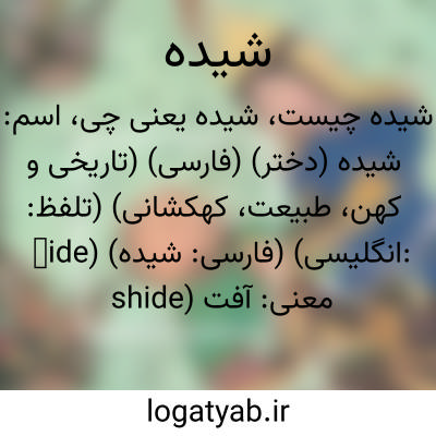اسم: شیده (دختر) (فارسی) (تاریخی و کهن، طبیعت، کهکشانی) (تلفظ: šide) (فارسی: شيده) (انگلیسی: shide)