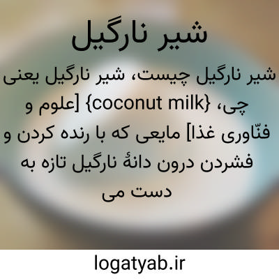 {coconut milk} [علوم و فنّاوری غذا] مایعی که با رنده کردن و فشردن درون دانۀ نارگیل تازه به دست می آید