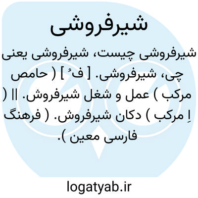 شیرفروشی. [ ف ُ ] ( حامص مرکب ) عمل و شغل شیرفروش. || ( اِ مرکب ) دکان شیرفروش. ( فرهنگ فارسی معین ).