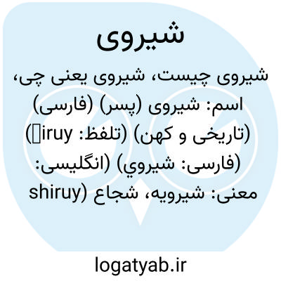 اسم: شیروی (پسر) (فارسی) (تاریخی و کهن) (تلفظ: širuy) (فارسی: شيروي) (انگلیسی: shiruy)