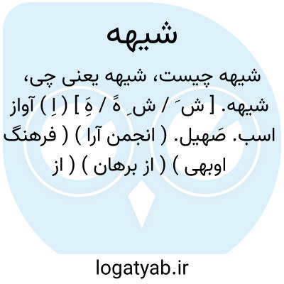شیهه. [ ش َ / ش ِ هََ / هَِ ] ( اِ ) آواز اسب. صَهیل. ( انجمن آرا ) ( فرهنگ اوبهی ) ( از برهان ) ( از غیاث ) ( یادداشت مؤلف ) ( از آنندراج ). شنه.شیه. بانگ اسب. صهال. ( یادداشت مؤلف ):
