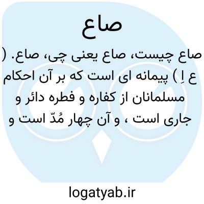 صاع. ( ع اِ ) پیمانه ای است که بر آن احکام مسلمانان از کفاره و فطره دائر و جاری است، و آن چهار مُدّ است و هر یک مُدّ یک رطل و ثلث رطل و رطل دوازده اوقیه است و اوقیه یک استار و دو ثلث استار، و استار چهار مثقال و نصف مثقال و مثقال یک درهم وسه سبع درهم و درهم شش دانگ و دانگ دو قیراط، و قیراط دو طسوج و طسوج دو جو میانه، و جو میانه شش یک از هشت یک درهم است و حبه یک چهل وهشتم درهم. داودی گوید که مقدار صاع که در آن اختلاف واقع نشود چهار مشت است از دو کف مرد میانه که نه بزرگ کف باشد و نه خرد، زیرا که در همه جا صاع نبی ( ص ) یافت نشود. ج، اَصْواع، اَصْوُع، اَصْؤُع، صوع. ( منتهی الارب ). کیله ای است به وسعت چهار مُدّ و مُدّ پری دو کف است از طعام... وقدر صاع به رطل عراقی نه رطل و به رطل مدنی شش رطل است. ( رساله اوزان و مقادیر مقریزی ). نام پیمانه ای است که چهار مد باشد و هر مد یک رطل و ثلث رطل باشد.( غیاث اللغات ). چهار مد بود نزد مردم مدینه و هشت رطل نزد مردم کوفه. ( مفاتیح العلوم خوارزمی ص 11 ). پیمانه چهارمنی. چهار من شرعی. ( زمخشری ). پنج رطل و چهار مد. یک من تبریز و سی مثقال است. ( از حاشیه صراح خطی ). مساوی دو هزار و نهصد و چهل و هشت گرم و چهل سانتی گرم است. ( ترجمه شرایع به فرانسه تألیف دوکری ج 1 ص 18 ح 1 ). مجازاً بمعنی جام آید: