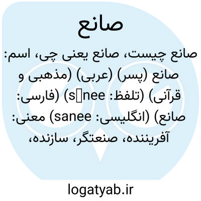 اسم: صانع (پسر) (عربی) (مذهبی و قرآنی) (تلفظ: sānee) (فارسی: صانع) (انگلیسی: sanee)