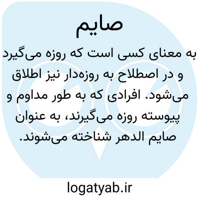 ( اسم ) ۱ - آنکه روزه گیرد روزه دار روزه گیر جمع صایمین. ۲ - یکی از امعائ که پس از اثنا عشر قرار دارد و بدان پیوسته است معائ صایم.