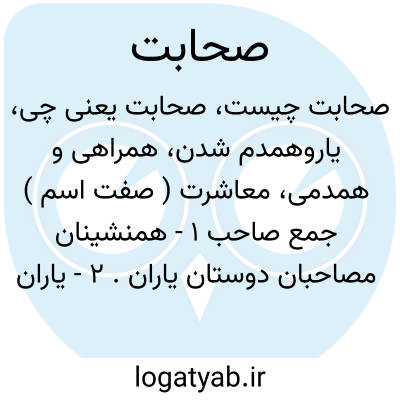 ( صفت اسم ) جمع صاحب ۱ - همنشینان مصاحبان دوستان یاران. ۲ - یاران پیغمبر ص کسانی که درک محضر پیغمبر ص کردند.