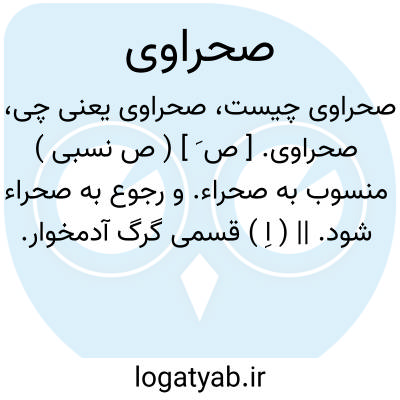 ( ~. ) [ ع. ] ۱ - (ص نسب. ) منسوب به صحرا. ۲ - (اِ. ) قسمی گرگ آدم خوار.