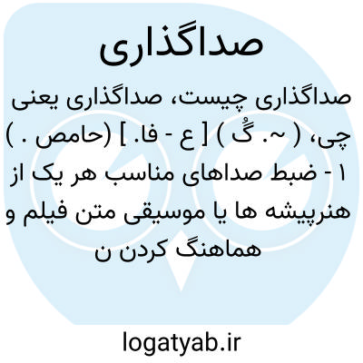 ( ~. گُ ) [ ع - فا. ] (حامص. ) ۱ - ضبط صداهای مناسب هر یک از هنرپیشه ها یا موسیقی متن فیلم و هماهنگ کردن نوارهای صدا با نوار تصویر. ۲ - افزودن صدای مناسب به فیلم.