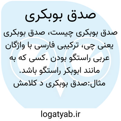 مثال:صدق بوبکری د کلامشَ: در سخنانش راستگواست به مانند ابوبکر.