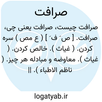 صرافت. [ ص َ ف َ ] ( ع مص ) سره کردن. ( غیاث ). خالص کردن. ( غیاث ). معاوضه و مبادله هر چیز. ( ناظم الاطباء ). || خالص بودن. ( غیاث ). || ( اِمص ) در تداول فارسی، توجه. میل: بصرافت طبع؛ بمیل خود. از صرافت کاری افتادن؛ آن را فراموش کردن.
