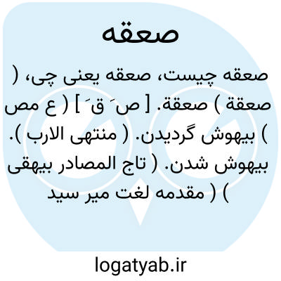 ( صعقة ) صعقة. [ ص َ ق َ ] ( ع مص ) بیهوش گردیدن. ( منتهی الارب ). بیهوش شدن. ( تاج المصادر بیهقی ) ( مقدمه لغت میر سید شریف ). || ( اِمص ) بیهوشی. ( غیاث اللغات ) ( منتهی الارب ):