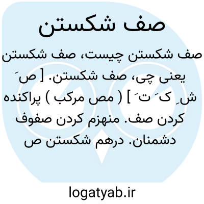 صف شکستن. [ ص َ ش ِ ک َ ت َ ] ( مص مرکب ) پراکنده کردن صف. منهزم کردن صفوف دشمنان. درهم شکستن صف: