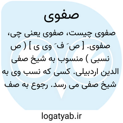 ( صفت ) منسوب به صفی الدین اردبیلی هریک از افراد خاندان صفی الدین اردبیلی جمع: صفیون صفویین ( بسیاق عربی ) صفویان ( بسیاق فارسی ).