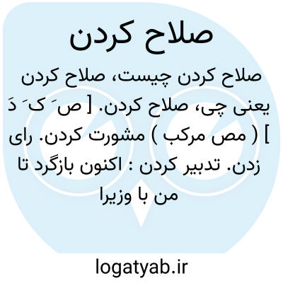 صلاح کردن. [ ص َ ک َ دَ ] ( مص مرکب ) مشورت کردن. رای زدن. تدبیر کردن: اکنون بازگرد تا من با وزیران خود صلاح کنم. ( قصص الانبیاء ). رجوع به صلاح شود.