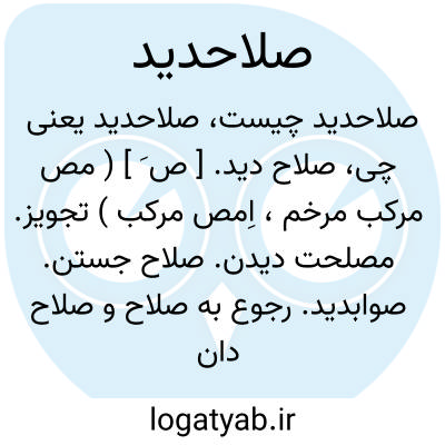 صلاح دید. [ ص َ ] ( مص مرکب مرخم، اِمص مرکب ) تجویز. مصلحت دیدن. صلاح جستن. صوابدید. رجوع به صلاح و صلاح دانستن و صلاح اندیشیدن شود.