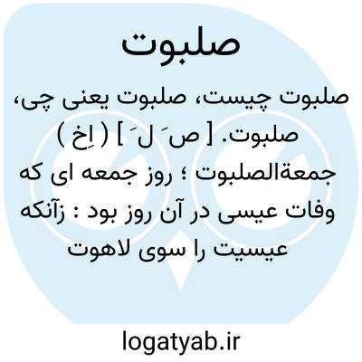 صلبوت. [ ص َ ل َ ] ( اِخ ) جمعةالصلبوت؛ روز جمعه ای که وفات عیسی در آن روز بود: