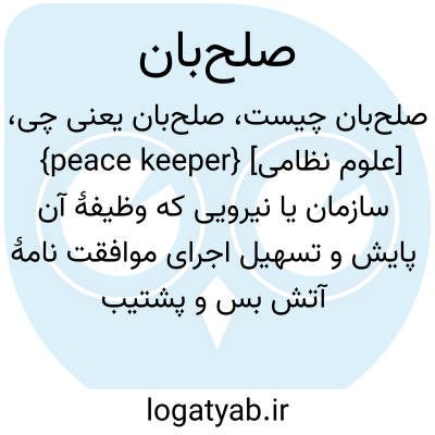 {peace keeper} [علوم نظامی] سازمان یا نیرویی که وظیفۀ آن پایش و تسهیل اجرای موافقت نامۀ آتش بس و پشتیبانی از تلاش های دیپلماتی برای حل اختلافات سیاسی درازمدت است