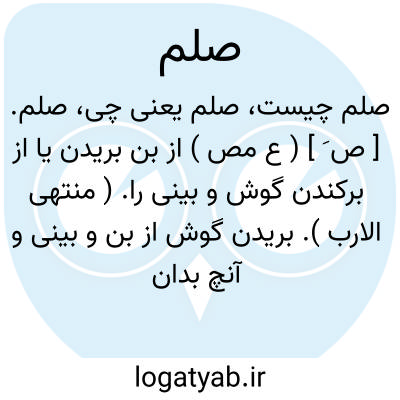 صلم. [ ص َ ] ( ع مص ) از بن بریدن یا از برکندن گوش و بینی را. ( منتهی الارب ). بریدن گوش از بن و بینی و آنچ بدان ماند. ( تاج المصادر بیهقی ). || ( اصطلاح عروض ) سقوط وتد مفروق است از آخر جزء و جزئی را که صلم در آن واقع شده اصلم نامند. پس از مفعولات بضم تاء مفعو باقی ماند و چون مفعو لفظی مهمل است، بجای آن فعْلن استعمال کنند، چنانکه عادت اهل عروض بر آن جاری است. هکذا فی رسائل العربیة و الفارسیه. ( از کشاف اصطلاحات الفنون ). حذف وتد مفروق است مانند حذف لات ُ از مفعولات ُ که مفعو باقی ماند و به فعلن نقل شود و آنرا اصلم نامند. ( تعریفات جرجانی ). صلم اسقاط وتد مفعولات ُ است، مفعو بماند، فعلن بجای آن بنهند و فعلن چون از مفعولات ُ خیزد آنرا اصلم خوانند. و بعضی عروضیان این زحاف را حذذ خوانند از بهر آنکه سقوط وتد است از آخر جزو همچنانک در عروض تازی سقوط وتدمتفاعلن را حذذ خوانند و در عروض پارسی سقوط وتد مستفعلن را حذذ خوانند و این اسم بدین زحاف لایقتر است و صلم بقطع وتد فاعلاتن لایقتر. ( المعجم چ خاور ص 42 ). صلم در فاعلاتن آن است که سبب او بیندازی و وتد را قطع کنی و قطع در اوتاد همچنان است که قصر در اسباب، یعنی ساکن آنرا بیندازند و ماقبل ساکن را ساکن گردانند و بدان زحاف از فاعلاتن فاعل ماند به سکون لام، فعلن بجای آن بنهند و فعلن چون از فاعلاتن خیزد آن را اصلم خوانند، یعنی گوش از بن بریده. و چون بدین زحاف سببی از این جزو کم شده است و وتد ناقص گشته آن را به گوش از بن بریدن تشبیه کردند. ( المعجم ایضاً ص 38 ).