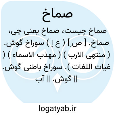 صماخ. [ ص ُ ] ( ع اِ ) شاید که مشتق از دردی بود در صماخ و آن شکافتن گوش است چه این کلمه بر وزن ادواء ( بیماریها )است، چون: سُعال و زُکام و حُلاق. ( معجم البلدان ).