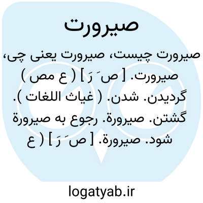 صیرورت. [ ص َ رَ ] ( ع مص ) گردیدن. شدن. ( غیاث اللغات ). گشتن. صیرورة. رجوع به صیرورة شود.