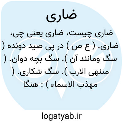 ضاری. ( ع ص ) در پی صید دونده ( سگ ومانند آن ). سگ بچه دوان. ( منتهی الارب ). سگ شکاری. ( مهذب الاسماء ): هنگام کار در غلبه و اقتحام سباع ضاری اندر شکار. ( جهانگشای جوینی ). ج، ضواری: کلب ٌ ضار؛ سگ حریص بشکار و سگ در پی صید رونده. || خون روان. ( منتهی الارب ). || سقاءٌ ضار باللبن؛ خیک نیکوکننده شیر. || عرق ٌ ضار؛ رگ که خون آن منقطع نشود. ( منتهی الارب ).