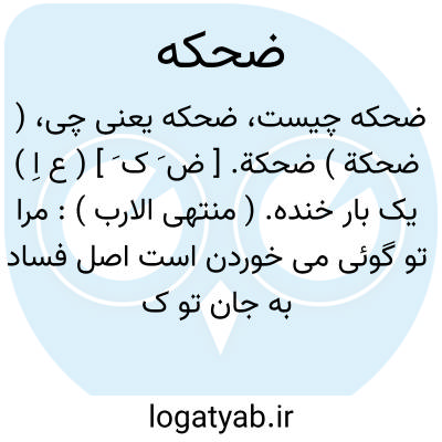 ضُحکه باشد نیل بر روی حبش.مولوی.صاحب کشاف اصطلاحات الفنون گوید: ضُحکة بروزن صُفرة، کسی که رفتار و گفتار و حرکات و سکنات او مردم را بخنده آورد، و ضَحکة بر وزن همزه، کسی که بر مردم بخندد. کذا فی الجرجانی.