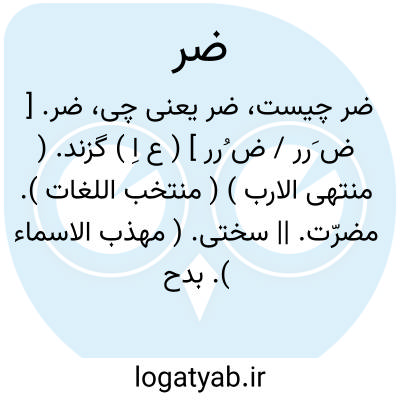 (ضَ رّ ) [ ع. ] (اِ. ) ۱ - زیان. ۲ - سختی، تنگی. ۳ - (مص ل. ) زیان رسانیدن.