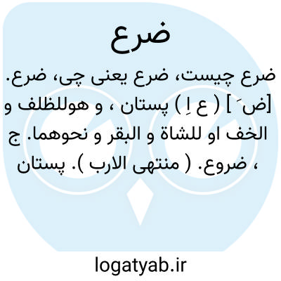 ضرع. [ض َ ] ( ع اِ ) پستان، و هوللظلف و الخف او للشاة و البقر و نحوهما. ج، ضروع. ( منتهی الارب ). پستان گاو و گوسفند. ( دهار ). پستان اشتر. ( مهذب الاسماء ). پستان گاو و گوسفند و غزال و امثال آن. پستان شتر و گاو و گوسفند و مانند آن، یا آنکه مخصوص بقر و غنم است. ( منتخب اللغات ):