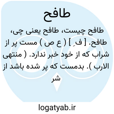 طافح. [ ف ِ ] ( ع ص ) مست پر از شراب که از خود خبر ندارد. ( منتهی الارب ). بدمست که پر شده باشد از شراب. ( غیاث اللغات ). مست طافح که بیش نتواند آشامید. پر از شراب. ( مهذب الاسماء ). سیاه مست. مست ِ مست. مستی مست. لول. مست ِ خراب:
