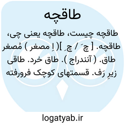 ( اسم ) طاق کوچک طاق خرد. ۲ - قسمت فرو رفته در دیوار اطاق فرودتر از رف که برای نهادن اشیائ و لوازم خانه سازند. یا طاقچه بالا نشین. پر افاده پر تکبر. یا دلش طاقچه ندارد. راز خود را نمی تواند نگه دارد.