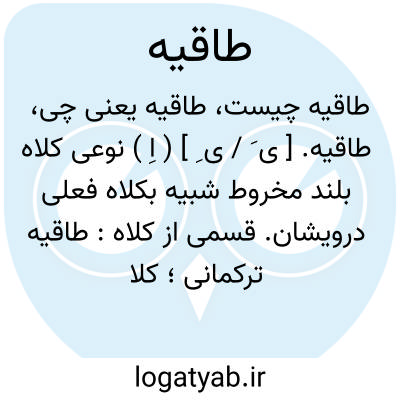 ( صفت اسم ) ۱ - نوعی کلاه بلند مخروط شبیه به کلاه درویشان. یا طاقیه ترکمانی. کلاه نظامیان عثمانی عرقچین. ۲ - بافته سرخ جمع: طاقیات.