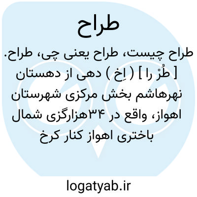 طراح. [ طُرْ را ] ( اِخ ) دهی از دهستان نهرهاشم بخش مرکزی شهرستان اهواز، واقع در 34هزارگزی شمال باختری اهواز کنار کرخه، کنار راه شوسه اهواز به سوسن گرد. دشت، گرمسیر با 120 تن سکنه. آب آن از رودخانه کرخه. محصول آنجا غلات. شغل اهالی زراعت و گله داری. راه آن در تابستان اتومبیل رو است. ساکنین از طایفه حلاف هستند. ( از فرهنگ جغرافیائی ایران ج 6 ).