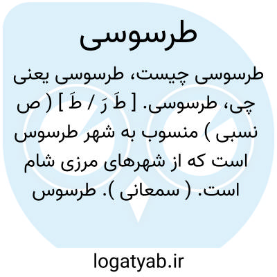 طرسوسی. [ طَ رَ / طَ ] ( ص نسبی ) منسوب به شهر طرسوس است که از شهرهای مرزی شام است. ( سمعانی ).